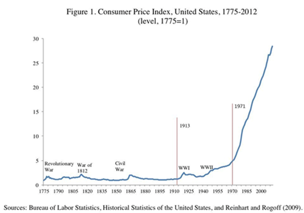 Prisinflasjon (stigende priser) ble et fenomen i USA på ordentlig etter 1971.