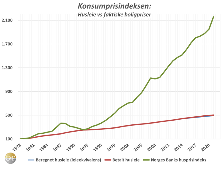 Vi har argumentert for at boligprisene burde være en del av KPI, og ikke en konstruert beregning for boligeiernes forbruk av boligtjenester. Beregnet husleie er en hypotetisk størrelse, den fanger ikke opp den virkelige verden. Å tenke på en primærbolig som en investering er absurd; den gir husly. Punktum.