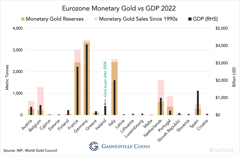 Seemingly there are guidelines in the eurozone for national central banks to hold an appropriate amount of gold relative to GDP.