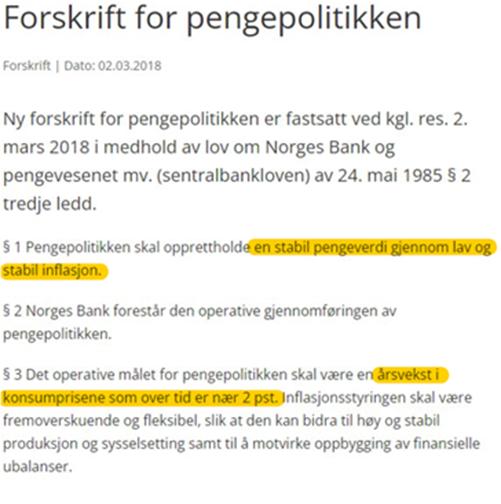 Tilbake til Norges Banks mandat.