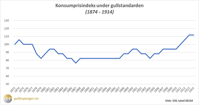Norge var på en gullstandard fra 1874 til 1914. Grafen under viser konsumprisindeksen i perioden.