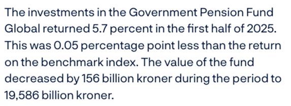 Kilde: Oljefondets halvårsrapport 2025Vi får si som Severin Suveren: Uflaks.