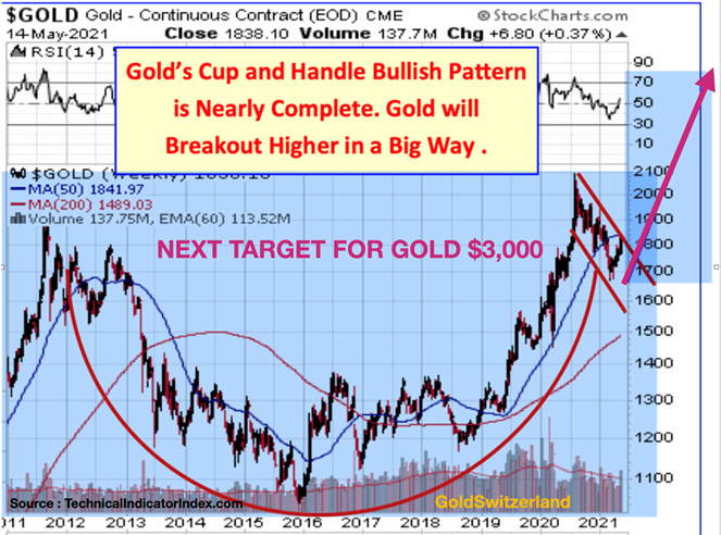 Technically gold is now finishing a big Cup and Handle pattern which projects around $3,000 as the next target.