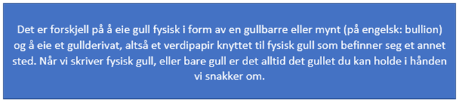 I Norge snakker vi ikke om gull! Kanskje litt om gullderivater (verdipapirer). Gull er hverken en del av den offentlige debatten (hvorfor eie gull?) eller utbredt som spareform blant privatpersoner. I resten av den vestlige verden er gull et tema – særlig nå som vi opplever økt inflasjonspress. Er vi virkelig så annerledes her i Norge?