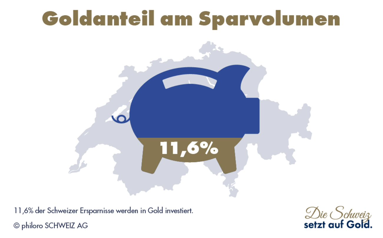 Sveitserne sparer enormt mye i fysisk gull som en langsiktig investering. Faktisk plasserte sveitserne 11,6% av sine sparemidler i gull i 2019[3].